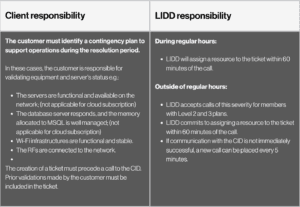 The guaranteed time related to the severity of the tickets applies only to level 1, 2 and 3 plans. If the customer has chosen not to take a package, tickets will be processed according to availability of LIDD resources.