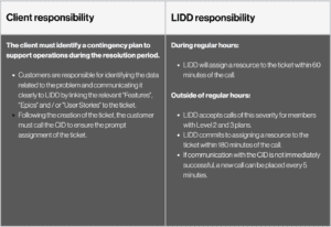 Before contacting the CID, customers are responsible for determining tickets severity levels. LIDD reserves the right to revise the severity if it has not been established correctly.