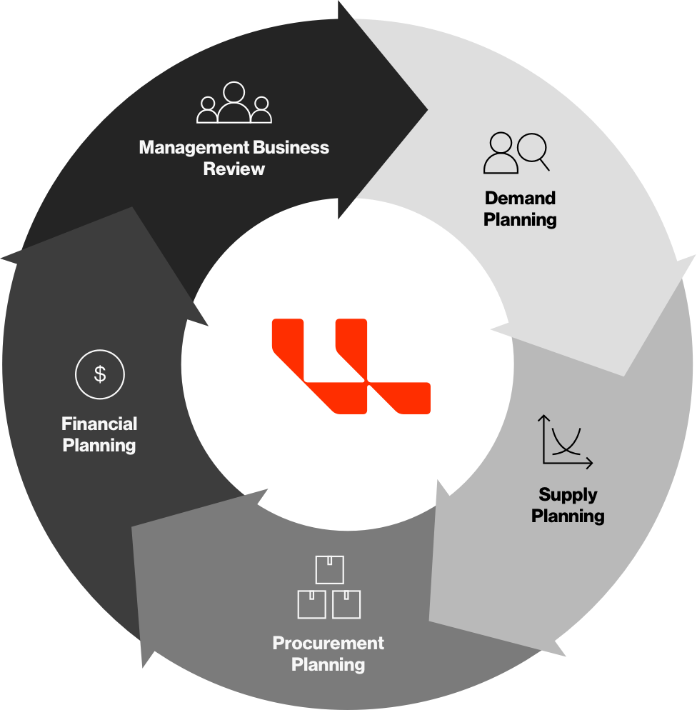 An integrated planning process aligns demand, supply, and financial planning. The S&OP process consists of a series of recurring interdepartmental meetings that help you stay within your company’s risk tolerance.