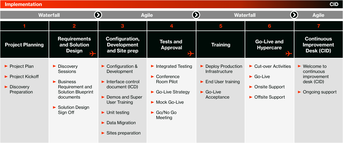 Execute cut-over, go live with support teams in place, and ensure stabilization.